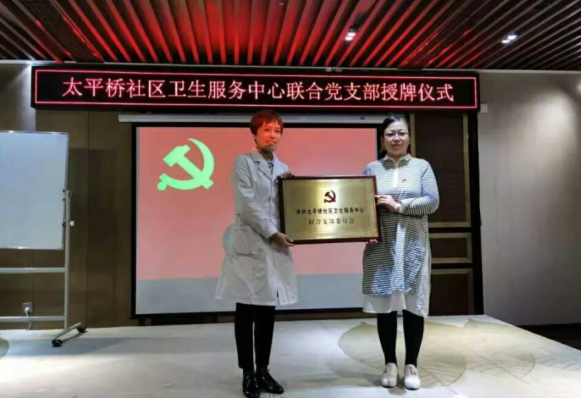 10月15日下午,太平桥社区服务中心联合党支部成立大会暨授牌仪式在太平桥社区服务中心会议室隆重举行。社会工作党委首科大厦工作站站长郭毅宣读了《关于成立太平桥社区服务中心联合党支部的批复决定》,社会工作党委副书记索春香向太平桥社区服务中心主任刘艳艳进行了授牌。随后,太平桥社区服务中心联合党支部书记张明发表了任职感言,她表示绝不辜负组织和同志们的期望,履行党员的政治核心作用,完成上级领导的要求和精神,带动发挥党员作用,支部作用,强化支部凝聚力,充分发挥堡垒作用,团结党员及群众,围绕“让百姓在家门口能享受最优质的医疗服务”宗旨,推动中心的稳步发展。