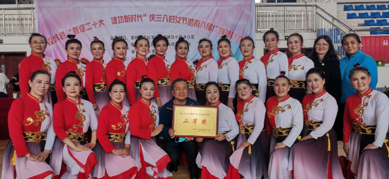 3月7日上午,霍城县委老干部局联合县文化体育广播电视和旅游局、县妇联举办“喜迎二十大 建功新时代”庆三八妇女节第八届广场舞比赛。来自全县机关、乡镇和学校的17只广场舞代表队参加了比赛。经过激烈的角逐,县委老干局代表队在全县17支代表队中脱颖而出,荣获二等奖。