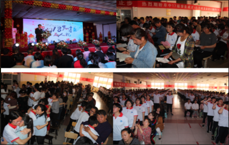 上图为:河北阜平中学17—14班的学生、教师、家长